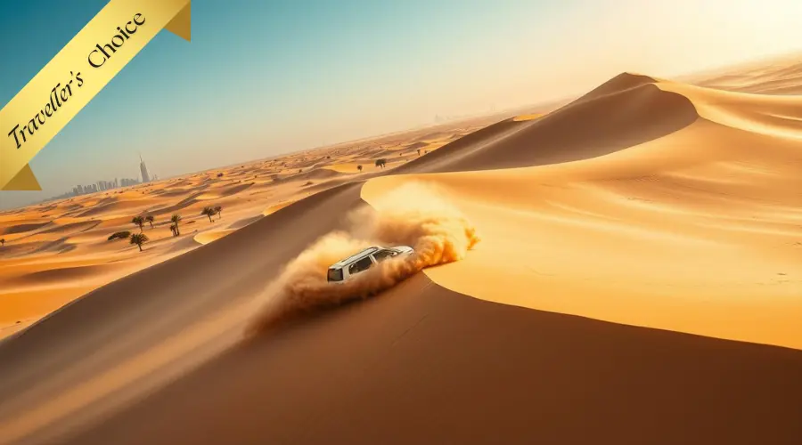 Your experience begins with a pickup from your hotel or residence in a modern, air-conditioned 4×4 vehicle. As you leave the city behind, skyscrapers give way to open sand dunes, instantly setting the mood for adventure.